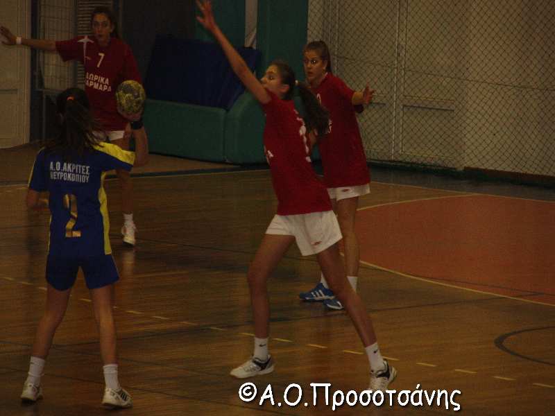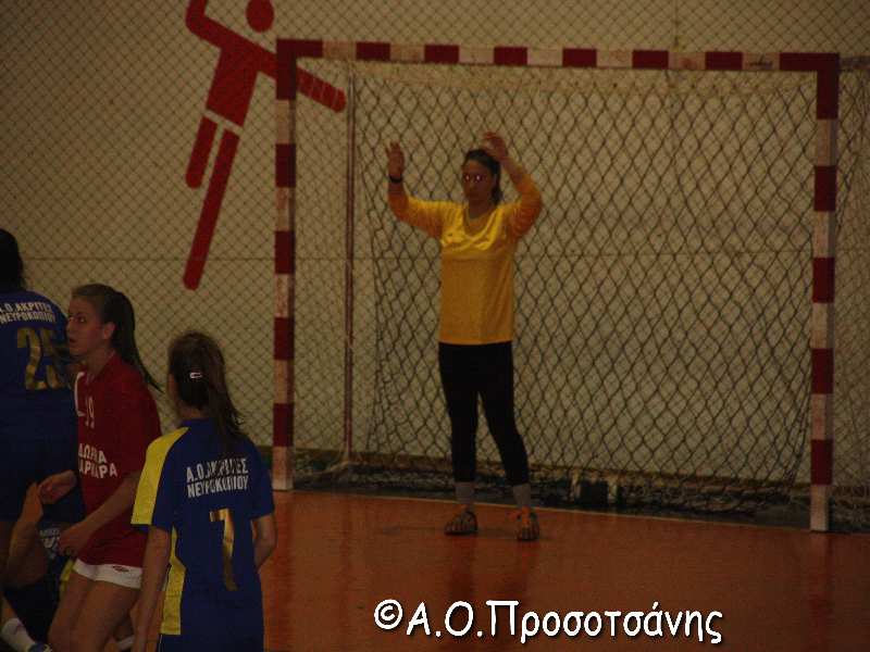 Η ομάδα του Νευροκοπίου κατάφερε μετά από έναν όμορφο αγώνα να κερδίσει με 38-32. Από την αρχή του αγώνα τα κορίτσια των Ακριτών πέρασαν μπροστά και διατήρησαν την πρωτοπορία μέχρι το τέλος του αγώνα. Με την έναρξη μάλιστα του δευτέρου ημιχρόνου διεύρυναν την διαφορά του ενός τέρματος που έληξε το πρώτο ημίχρονο και πήραν μια δίκαιη νίκη.