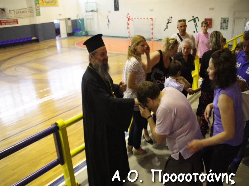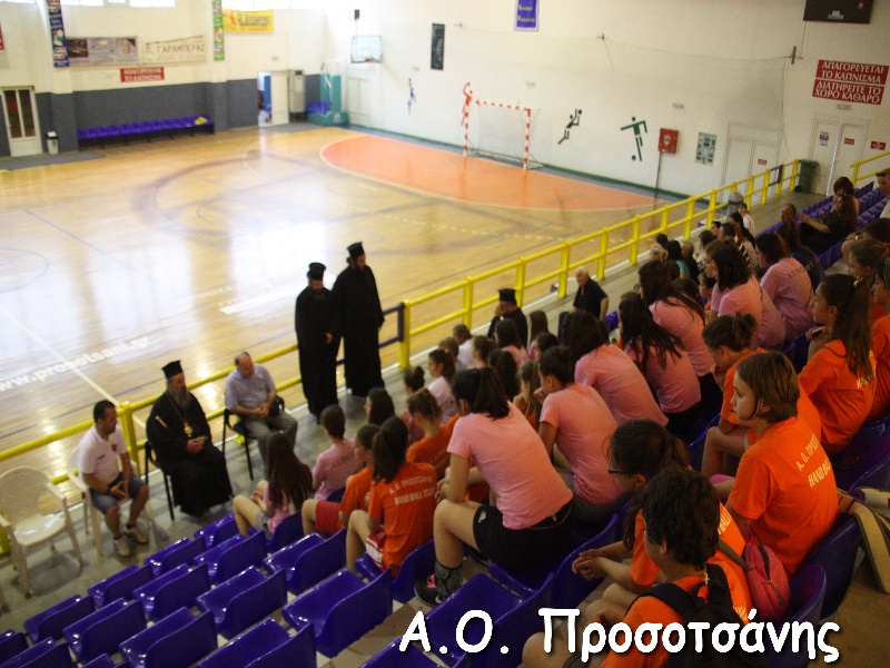 Την ευλογία του Σεβασμιότατου Μητροπολίτη Δράμας κ.κ. Παύλου δέχθηκαν οι αθλήτριες και οι αθλητές του Αθλητικού Ομίλου Προσοτσάνης, την Παρασκευή 13 Ιουνίου. Ο Σεβασμιότατος δέχθηκε με χαρά να συναντήσει τα παιδιά, στον δικό τους χώρο και να συνομιλήσει μαζί τους, ιδιαίτερα με τις αθλήτριες του συλλόγου, οι οποίες με το Γενικό Λύκειο Προσοτσάνης θα πάρουν μέρος στο παγκόσμιο σχολικό πρωτάθλημα που θα πραγματοποιηθεί στην Τραπεζούντα από τις 20 μέχρι τις 30 Ιουνίου.