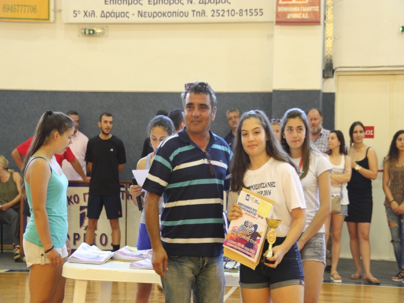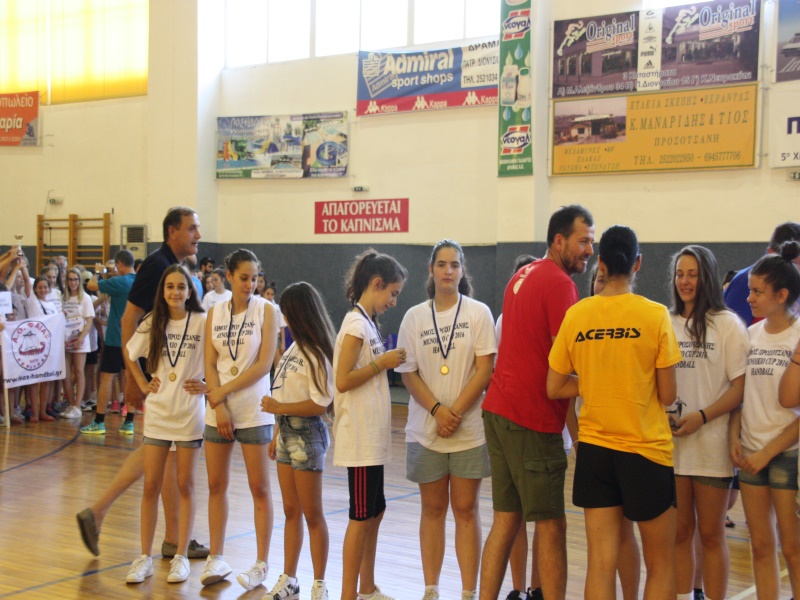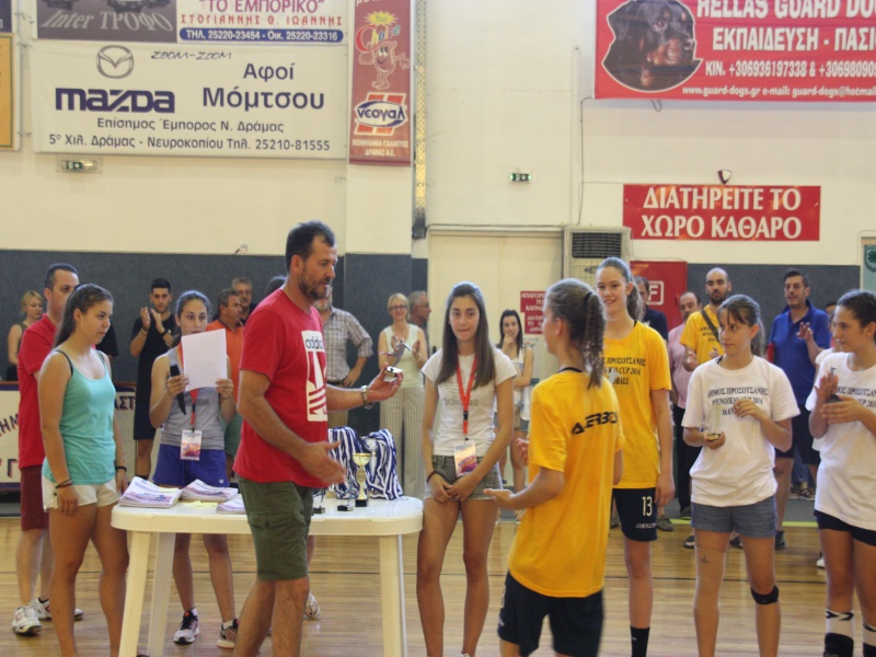 Στο τέλος των αγώνων πραγματοποιήθηκε στο Κλειστό Γυμναστήριο η τελετή λήξης. Οι διοργανωτές φρόντισαν να απονεμηθούν σε όλες τις ομάδες κύπελλα για την συμμετοχή τους, αναμνηστικά διπλώματα, ενώ ο μεγάλος χορηγός της τελικής φάσεις «Μενοίκιο» Τυροκομικά Προϊόντα, μοίρασε στις αθλήτριες το γευστικό του κατσικίσιο κακάο, τις απονομές έκαναν διεθνείς αθλήτριες, με καταγωγή από την Προσοτσάνη και Δράμα, οι ομοσπονδιακοί προπονητές, πρόεδροι συλλόγων, τοπικοί παράγοντες και οι δήμαρχοι Προσοτσάνης και Νευροκοπίου.