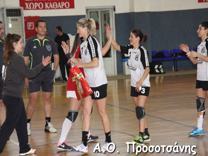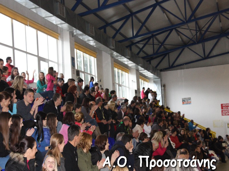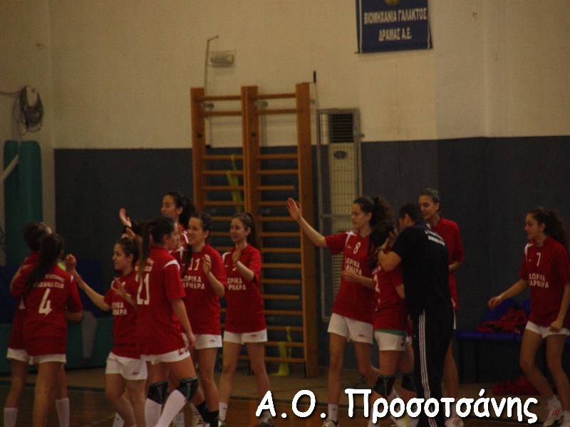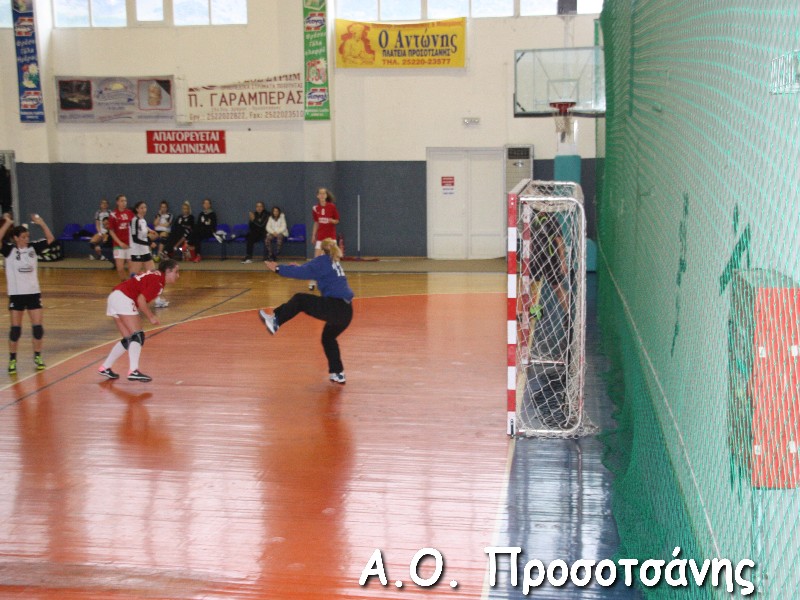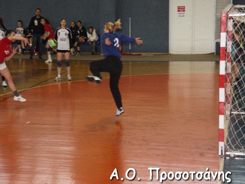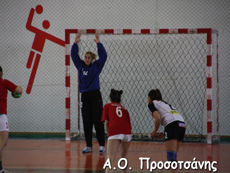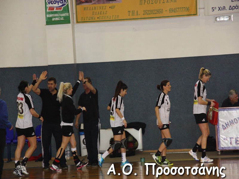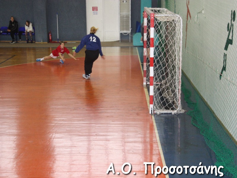 Οι νεαρές αθλήτριες το Α.Ο. Προσοτσάνης, μ.ο. ηλικίας 17, στάθηκαν επάξια απέναντι στις υποψήφιες πρωταθλήτριες Ελλάδος και υποψήφιες κυπελλούχες πλέον. Το παιχνίδι για ένα ημίχρονο ήταν πραγματικό ντέρμπι, με τις δύο ομάδες να συμβαδίζουν στα τέρματα και να κλείνει το ημίχρονο με την φιλοξενούμενη ομάδα να προηγείται 16-18.